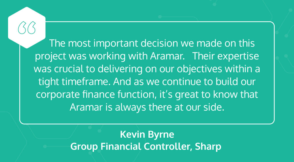 Following the success of the project, Sharp’s corporate finance team is continuing to engage with Aramar for mentoring and knowledge transfer, as well as discussing future financial planning and reporting initiatives.